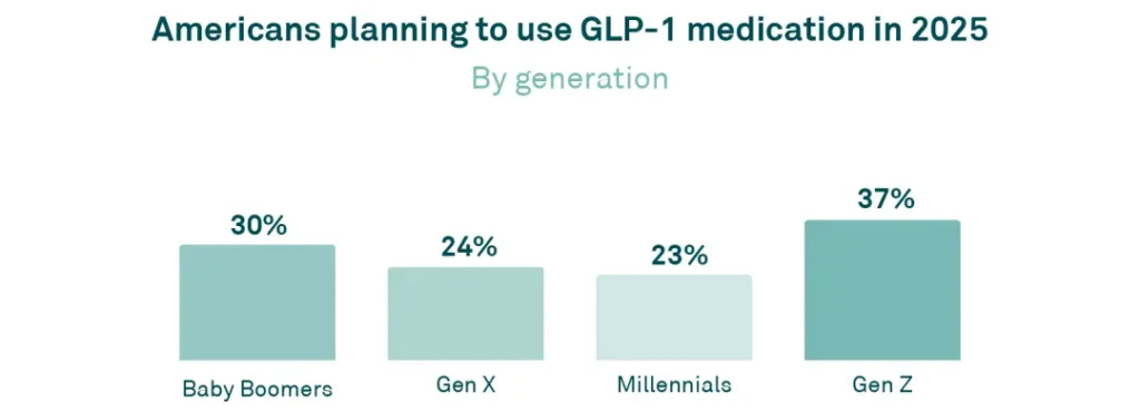 Gen Z Leads GLP-1 Resolution Trend: Over one-quarter of Americans, driven especially by Gen Z, plan to use GLP-1 weight-loss medications to reach their 2025 health goals, though accessibility and cost concerns remain widespread.